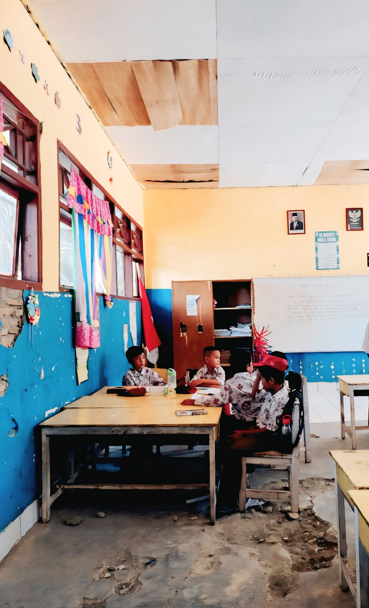 “Plafon sering mi berjatuhan, bahkan rayap sudah naik di atasnya. Jangan sampai ada korban jiwa dulu baru ada perhatian,” keluh salah seorang wali murid.