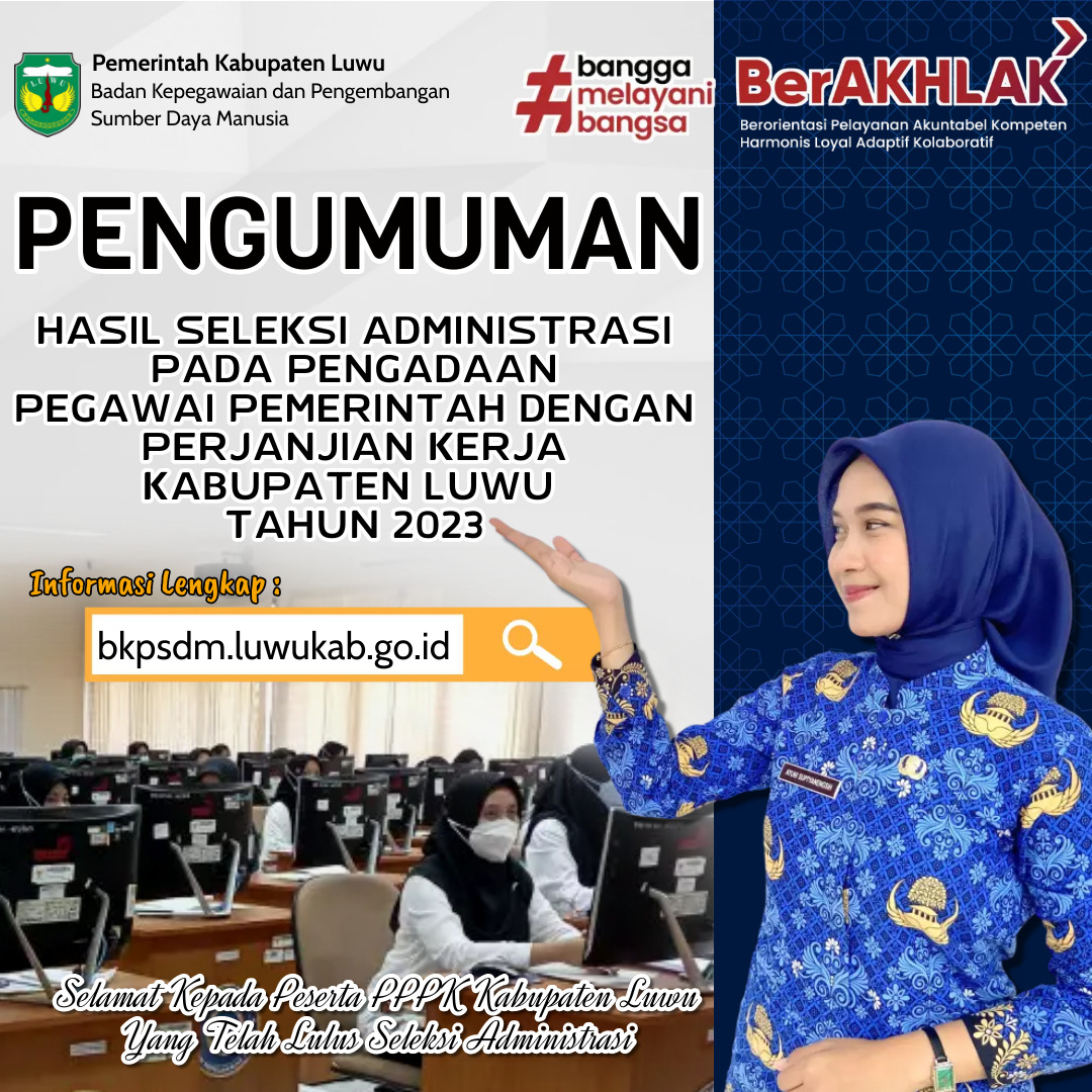 Luwu, Metroluwuraya.com — Badan Kepegawaian dan Pengembangan Sumber Daya Manusia (BKPSDM) Kabupaten Luwu mengumumkan hasil seleksi administrasi pengadaan Pegawai Pemerintah dengan Perjanjian Kerja (PPPK) Tahun 2023.