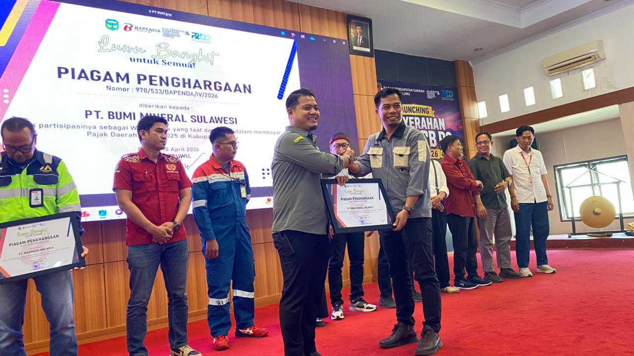 Metroluwuraya.com| PT Bumi Mineral Sulawesi (BMS) meraih penghargaan dari Pemerintah Kabupaten Luwu sebagai bentuk pengakuan atas komitmen perusahaan dalam memenuhi kewajiban pajak daerah secara konsisten.