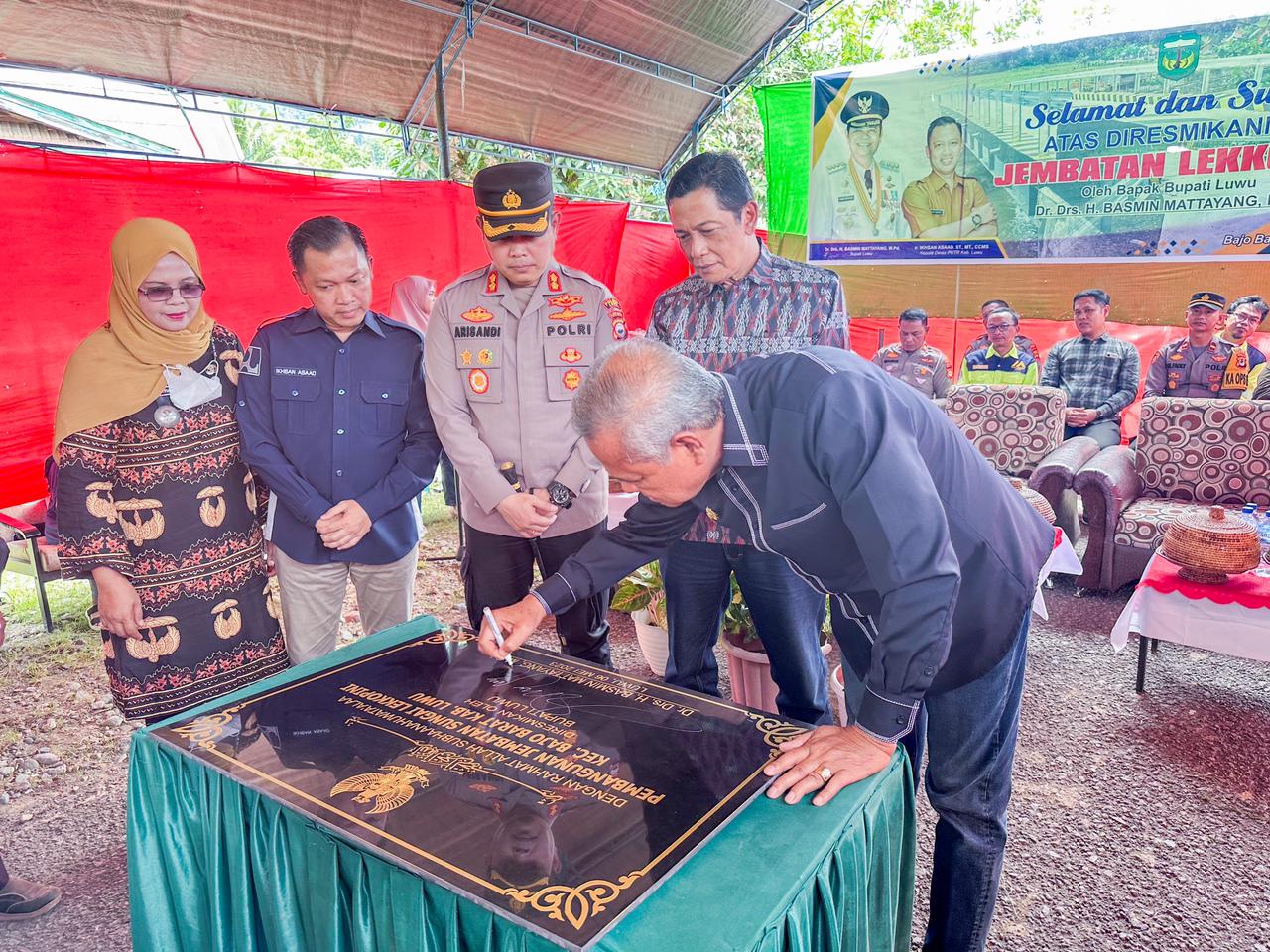 LUWU, METROLUWURAYA.COM –Sabtu 06/05 pagi kemarin menjadi hari yang membahagiakan dan membanggakan bagi warga masyarakat Luwu. Disaksikan sejumlah pihak, Bupati Luwu Basmin Mattayang meresmikan Jembatan Baru Lekopini yang pembiayaannya bersumber dari dana hibah PT Masmindo Dwi Area (Masmindo). Dalam peresmian tersebut turut hadir Kapolres Luwu AKBP Arisandi beserta jajarannya, Direktur Utama Masmindo Trisakti Simorangkir, sejumlah kepala OPD dan juga anggota Tim Koordinasi Kerjasama Daerah (TKKSD) Kab. Luwu, perwakilan Dandim 1403 Sawerigading dan jajarannya, Camat Bajo Barat, Kepala Desa Bonelemo, tokoh masyarakat, tokoh adat, tokoh agama, perwakilan manajemen dan karyawan Masmindo, serta sejumlah awak media.