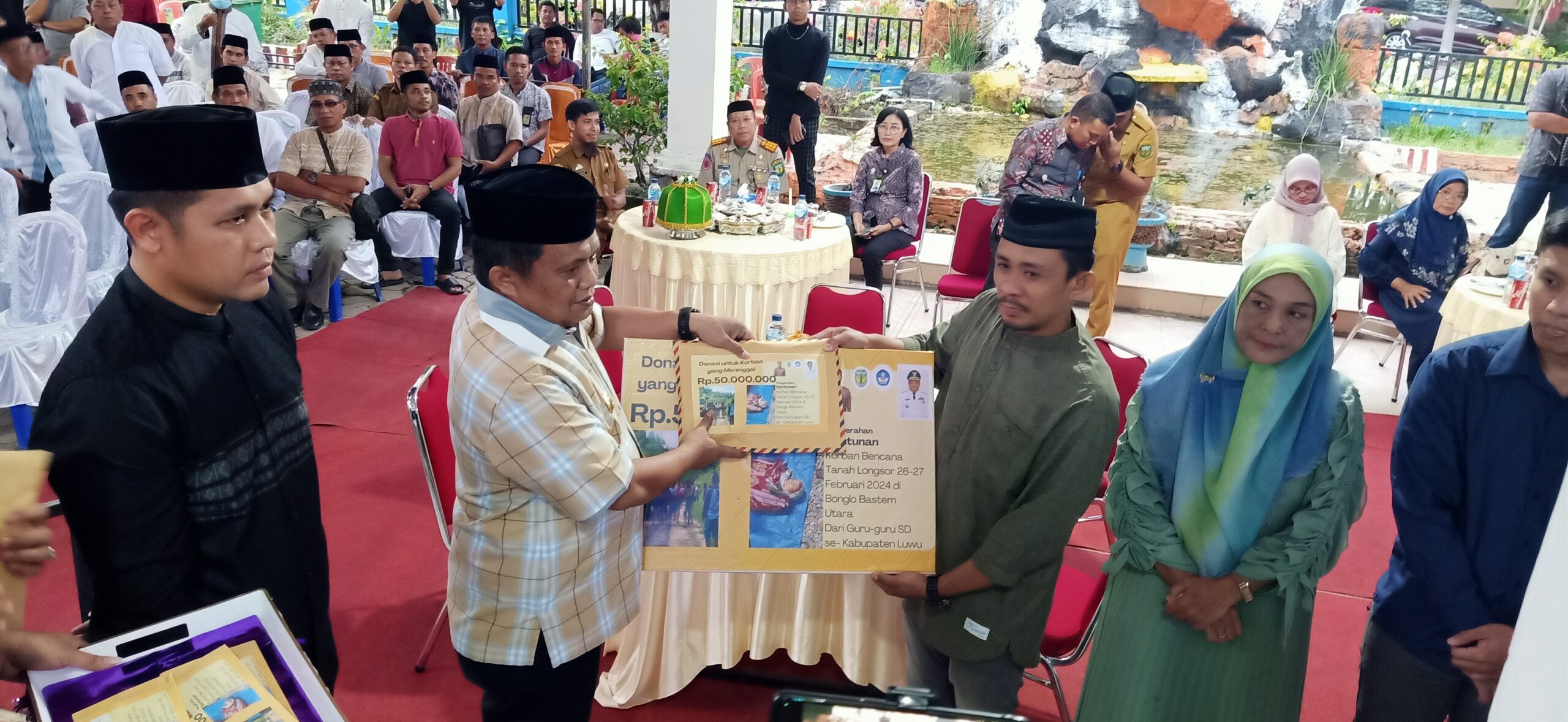 Dinas Pendidikan Luwu berhasil mengumpulkan donasi sebesar Rp 110 juta dan bantuan itu diserahkan langsung Penjabat Bupati Luwu kepada para keluarga korban.(*)