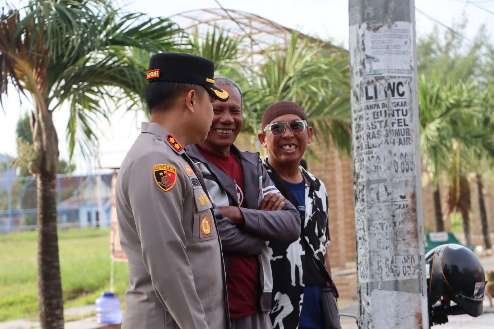 Kapolres terlihat bercengkerama dan berbincang santai dengan warga yang sedang menunggu waktu berbuka. Dalam kesempatan itu, ia membuka ruang diskusi ringan dengan menanyakan kondisi keamanan di lingkungan sekitar serta berbagai permasalahan yang dihadapi warga sehari-hari.