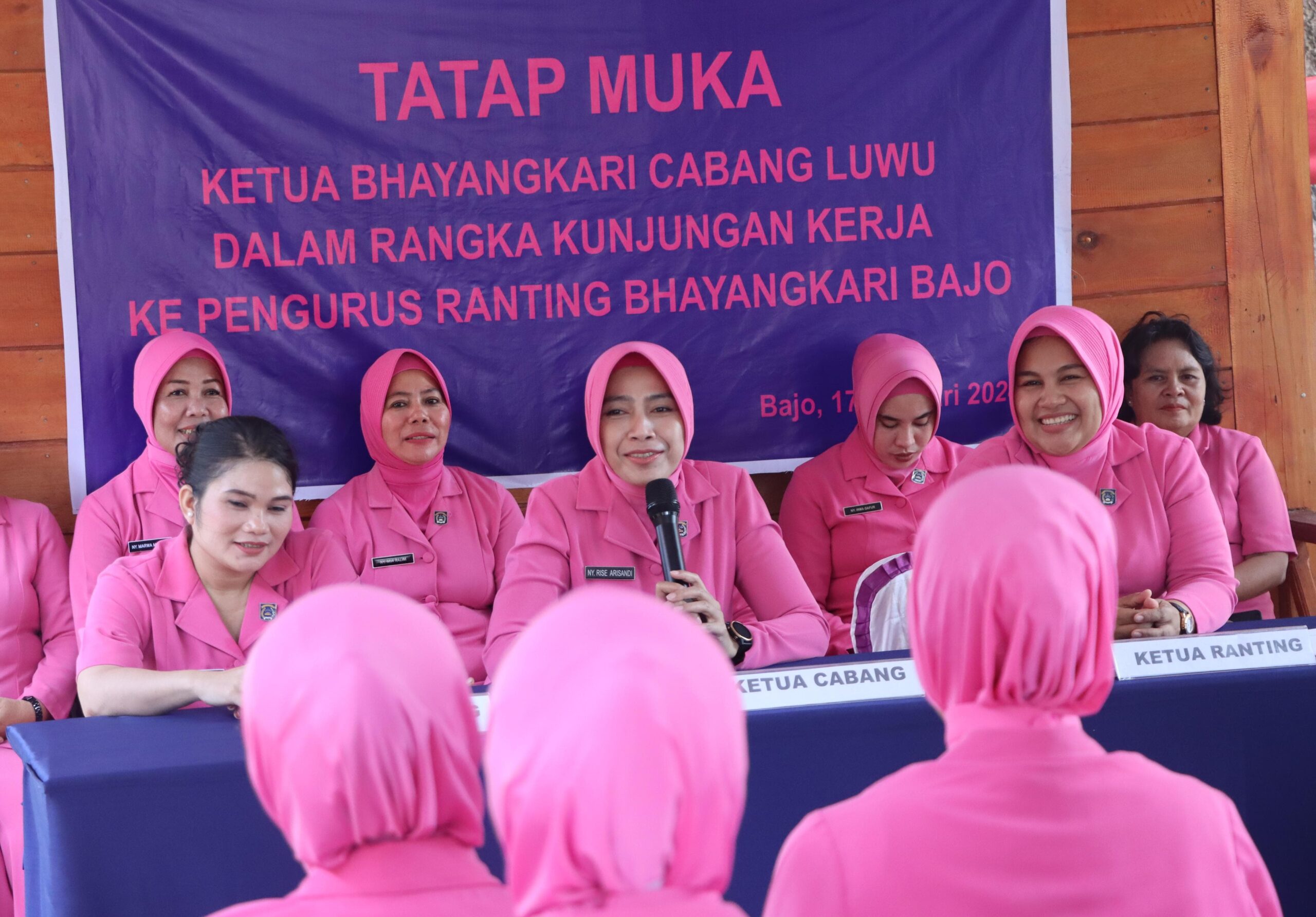 Metroluwuraya.com, Luwu — Ketua Bhayangkari Cabang Luwu Ny. Rise Arisandi melaksanakan kunjungan kerja dan tatap muka dengan para pengurus Ranting Bhayangkari jajaran Luwu, pada Selasa (17/1/2024).
