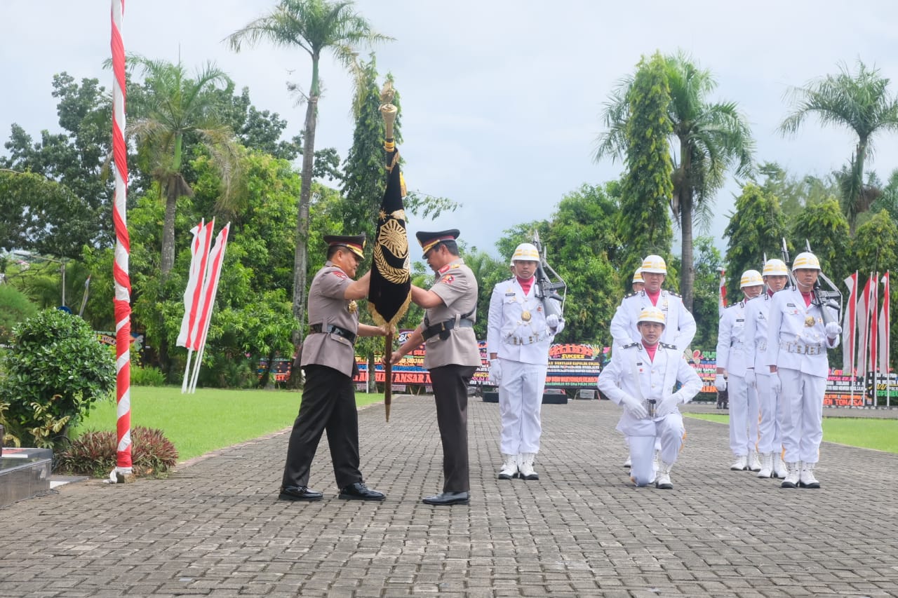 Penyerahan dilaksanakan dalam upacara Serah terima Pataka “Pallawa Lipu” Polda Sulsel yang digelar di Lapangan Upacara, Mapolda Sulsel, Senin siang. (03/04/2023)