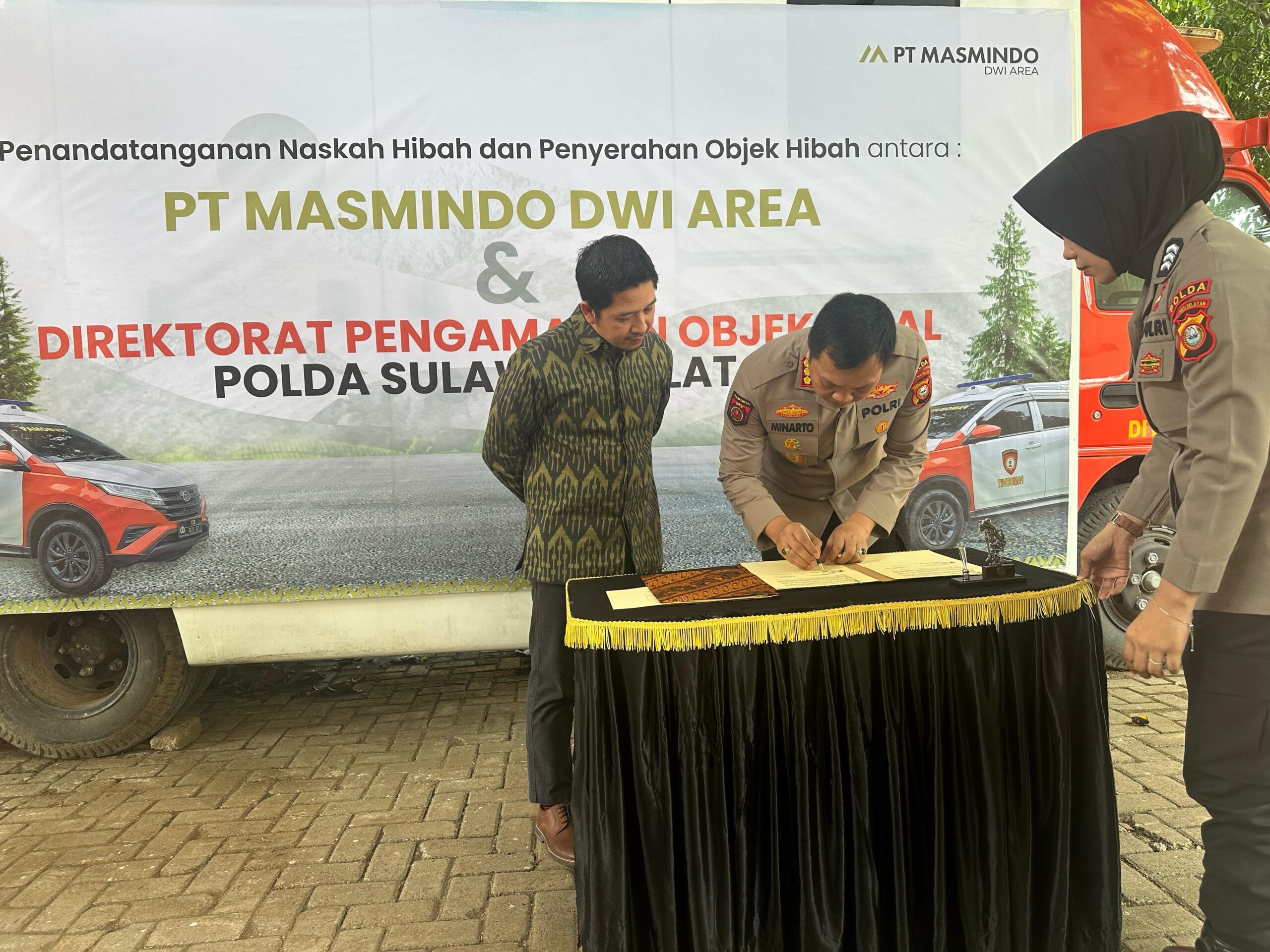 Penandatanganan dokumen dilakukan oleh Direktur Pamobvit Polda Sulsel Kombes Pol Minarto, S.I.K., dan General Manager Commercial & Corporate Affairs MDA Samsurizal Adi Bharata. Kegiatan ini turut dihadiri jajaran pimpinan Polda Sulsel, termasuk Komandan Satuan Brimob dan Direktur Sabhara.