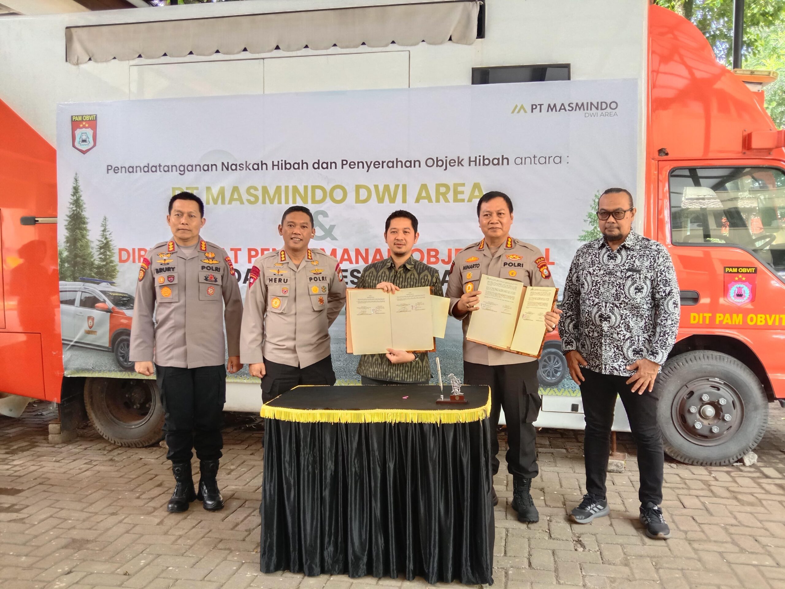 Sebagai bagian dari kerja sama tersebut, MDA menyerahkan hibah berupa kendaraan operasional untuk mendukung pelaksanaan tugas pengamanan oleh aparat kepolisian di lapangan.