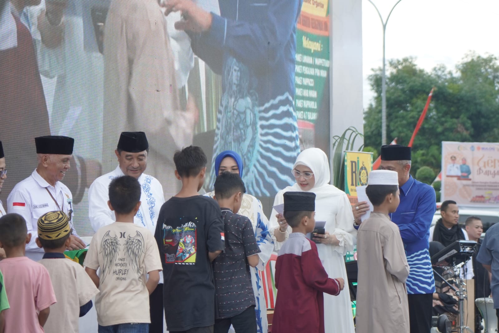 Selanjutnya penyerahan piagam penghargaan atas partisipasi program sedekah pohon untuk mendukung gerakan tanam pohon di Sulawesi Selatan, penyerahan sedekah bibit 10.000 kepada masyarakat, penyerahan Paket Bantuan Sosial, dan penyerahan santunan anak yatim dan penyandang disabilitas.