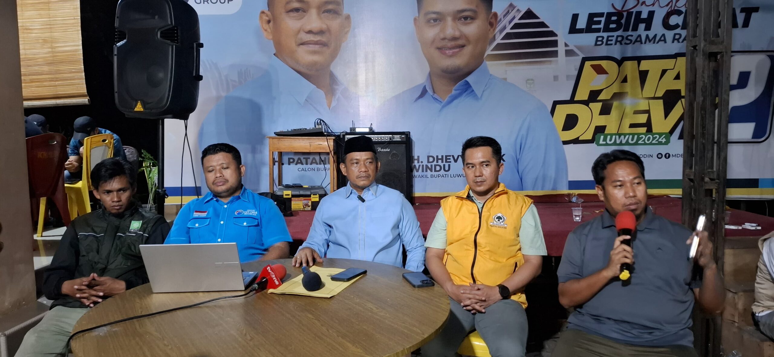 H Amru Saher selaku Ketua Tim Pemenangan Pata-Dhevy, mengungkapkan, setelah proses pencoblosan dan penghitungan suara Pilkada Luwu 2024 dan dilakukan penghutungan cepat melalui C1 (C-Hasil)  terjadi hasil yang menggembirakan