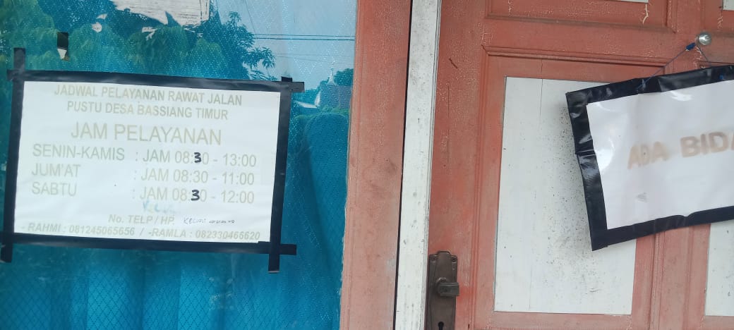 Pengaturan jam pelayanan yang diterapkan secara sepihak itu tidak sesuai kebutuhan warga. Bidan Desa Bassiang Timur itu bernama Rahmi, yang sudah lama bertugas di desa tersebut, di depan dinding pustu tempat ia bertugas  tertulis pengumuman pelayanan, Senin-Kamis melayani pukul 08:30-13.00 wita, sementara pada hari Jum’at hanya melayani sampai pukul 11.00 wita dan pada Sabtu melayani pada pukul 08:30-12.00 wita, dan pada Ahad sepertinya tidak ada pelayanan. Mirip dengan pengumuman dokter praktik. Menurut Bidan Rahmi begitulah memang jam pelayanan.