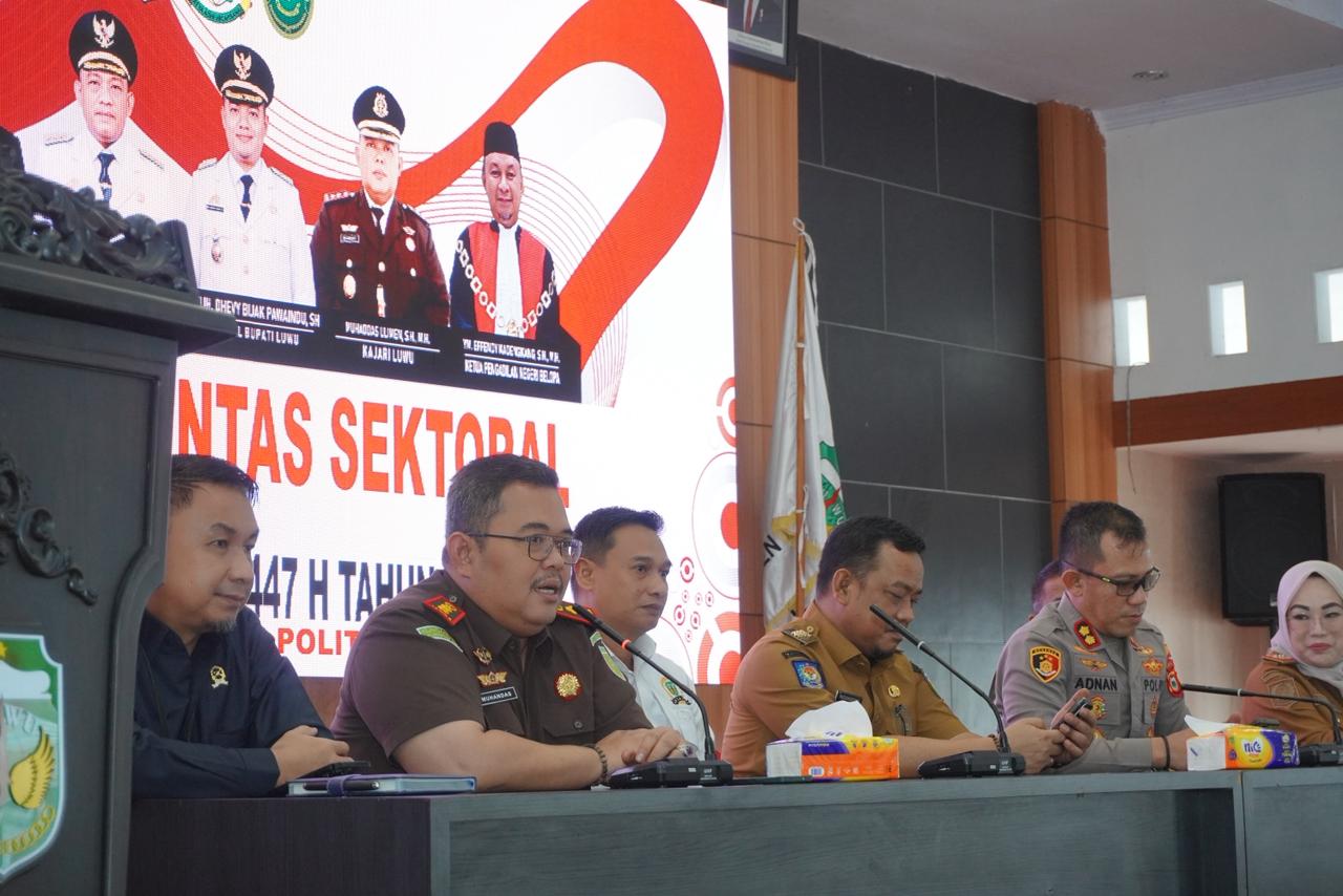 Rapat berlangsung di Belopa pada Selasa (10/3/2026) dan dihadiri Ketua DPRD Luwu Ahmad Gazali, Kapolres Luwu AKBP Adnan Pandibu, Kepala Kejaksaan Negeri Luwu Muhandas Ulimen, Ketua Pengadilan Negeri Belopa YM. Effendy Kadengkang, serta Perwira Penghubung (Pabung) Luwu Mayor Kav. Suparman.
