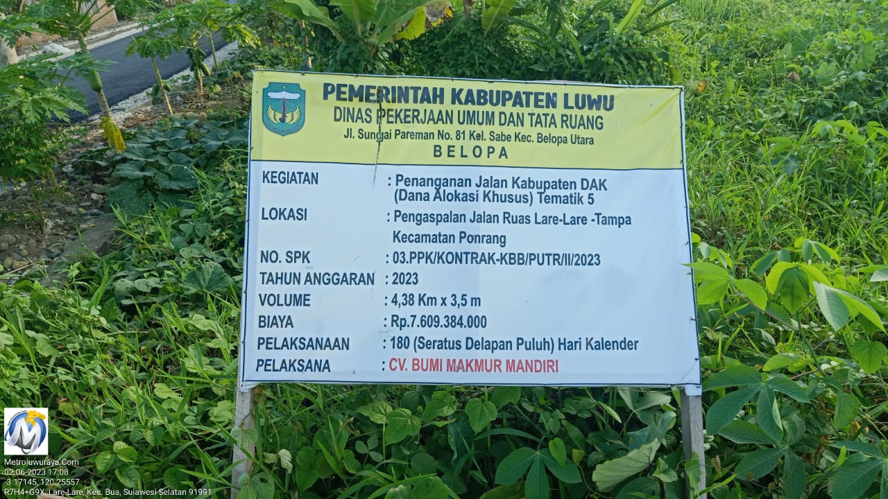 Salah satu ruas jalan yang telah rampung pengerjaannya pada tahun 2023 ini yakni Ruas jalan Lare-lare – Tampa dengan anggaran 7,6 Milliar rupiah, yang bersumber dari dana Alokasi Khusus (DAK) tematik 5.