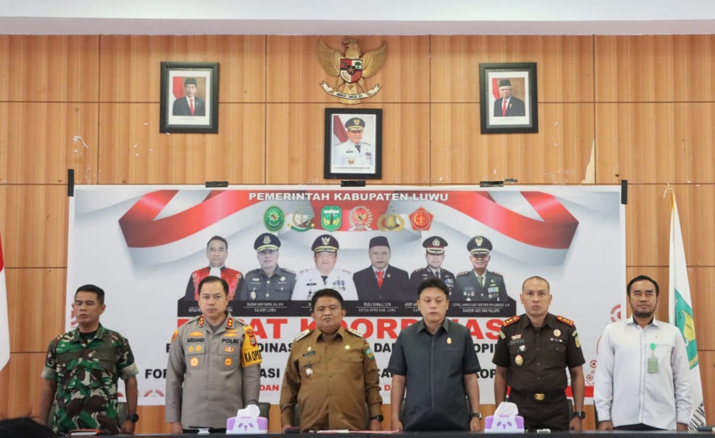 Penjabat Bupati Luwu Drs. H. Muh. Saleh, M.Si. dalam sambutannya sekaligus membuka kegiatan rakor menyampaikan rasa terima kasih kepada seluruh unsur Forkopimda dan Forkopimcam yang sempat hadir serta mengapresiasi upaya yang telah dilakukan TNI – Polri dalam mengawal pesta demokrasi Pemilu 2024 yang lalu sehingga wilayah kabupaten Luwu tetap aman dan kondusif.