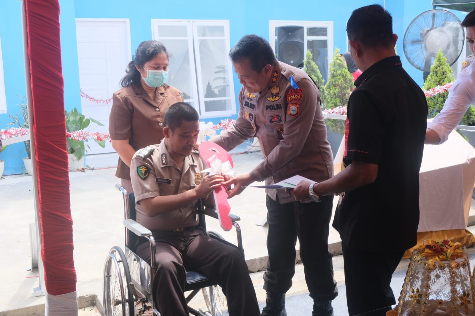 Makassar, Metroluwuraya.com —Kapolda Sulsel Irjen Pol Drs. Setyo Boedi Moempoeni Harso, S.H., M.Hum menyerahkan bantuan rumah kepada anggotanya Aiptu Martin Tutu anggota Logistik Satker Rumkit Bhayangkara yang bertugas dengan baik meskipun dalam keadaan sakit Stroke, namun tetap aktif melaksanakan tugasnya.