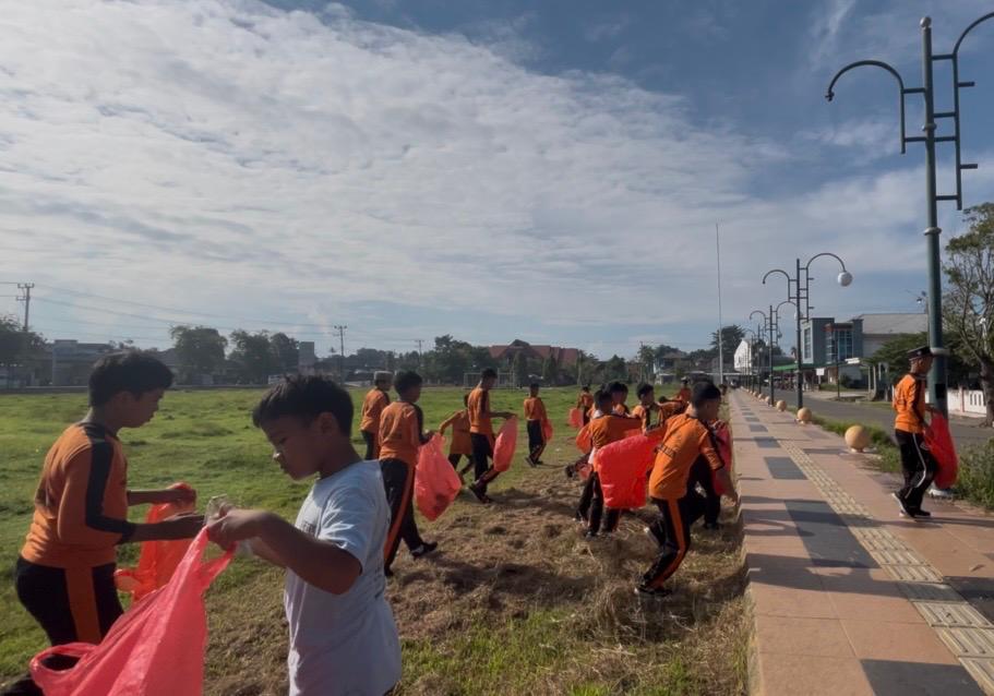 Kegiatan ini tidak hanya berfokus pada kebersihan area sekolah, tetapi juga menjangkau fasilitas umum di sekitarnya, termasuk kawasan Lapangan Andi Maradang.