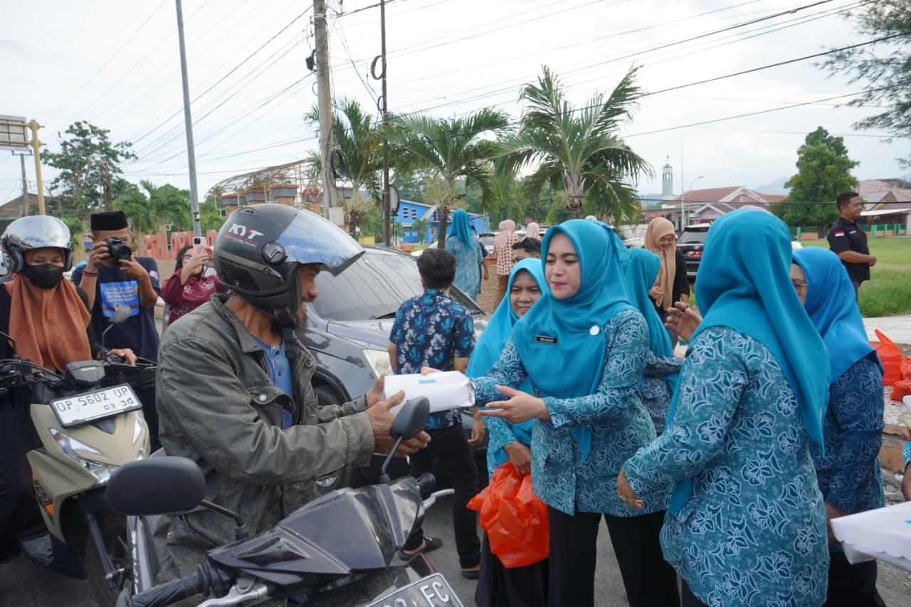 Metroluwuraya.com| Tim Penggerak PKK Kabupaten Luwu bersama Dharma Wanita Persatuan (DWP) Kabupaten Luwu menggelar kegiatan Amaliah Ramadan yang dirangkaikan dengan pembagian takjil, pengajian, serta buka puasa bersama. Kegiatan tersebut dilaksanakan di Jalan Poros Trans Sulawesi, Belopa, serta di Kantor Tim Penggerak PKK Kabupaten Luwu, Jumat (13/3/2026).